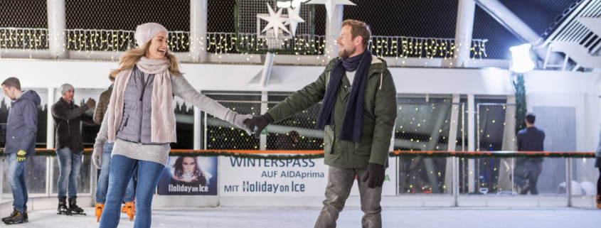 Die Feiertage bieten Raum für Begegnungen, wenn Kinder im Kids Club Freundschaften schliessen und Erwachsene beispielsweise beim Eisstockschiessen auf AIDAprima und AIDAnova ins Gespräch kommen. Die 200 Quadratmeter grosse, weihnachtlich beleuchtete Eislaufbahn auf AIDAprima sorgt auch auf See für winterliches Flair.