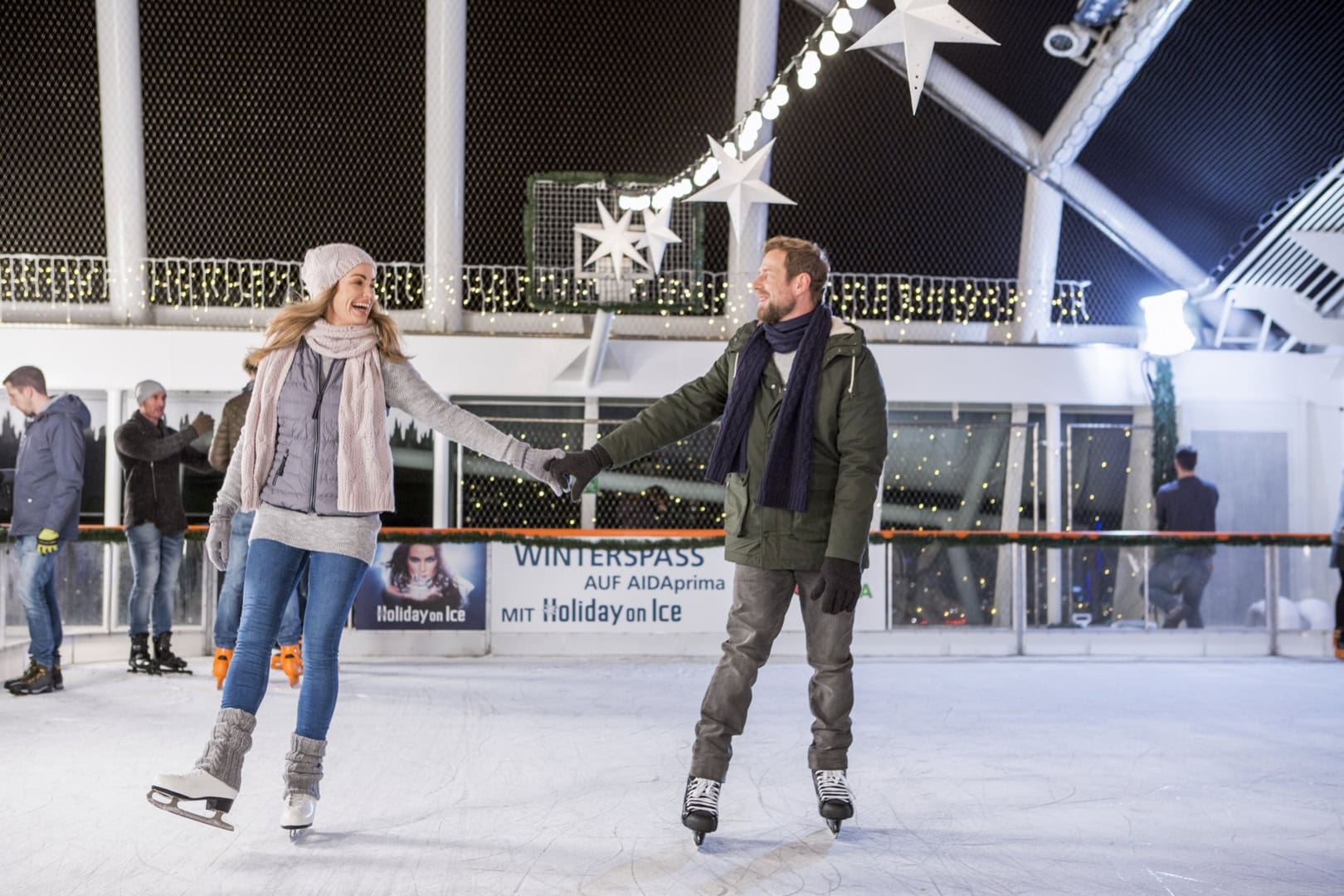 Die Feiertage bieten Raum für Begegnungen, wenn Kinder im Kids Club Freundschaften schliessen und Erwachsene beispielsweise beim Eisstockschiessen auf AIDAprima und AIDAnova ins Gespräch kommen. Die 200 Quadratmeter grosse, weihnachtlich beleuchtete Eislaufbahn auf AIDAprima sorgt auch auf See für winterliches Flair.