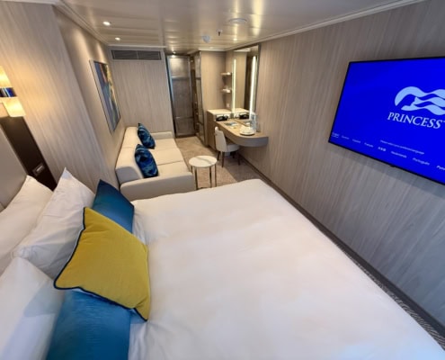 Die Kabinen der Star Princess bieten eine Vielfalt an Möglichkeiten, um deinen Aufenthalt an Bord so angenehm wie möglich zu gestalten. Besonders hervorzuheben sind die exklusiven Suiten der Sanctuary Collection, die mit zusätzlichen Annehmlichkeiten und mehr Raum für Privatsphäre überzeugen. Komfortable Mini-Suiten ergänzen das Angebot und bieten eine attraktive Alternative für dich, wenn du Wert auf Behaglichkeit legst. Die Kabinen sind so gestaltet, dass sie sowohl für Einsteigerinnen und Einsteiger als auch für erfahrene Kreuzfahrerinnen und Kreuzfahrer ein Zuhause auf Zeit bieten. Die Kabine ist dein privater Wohnbereich auf dem Kreuzfahrtschiff, vergleichbar mit einem Hotelzimmer. Eine Suite ist eine besonders geräumige und komfortable Kabine mit zusätzlichen Annehmlichkeiten.