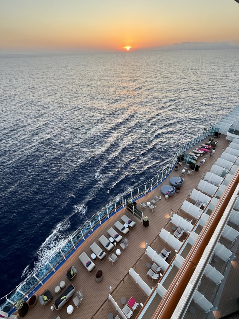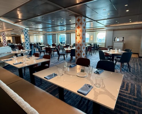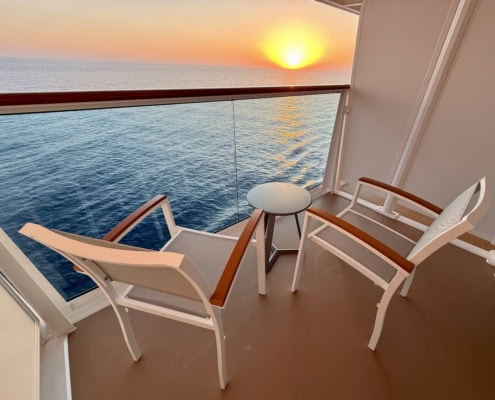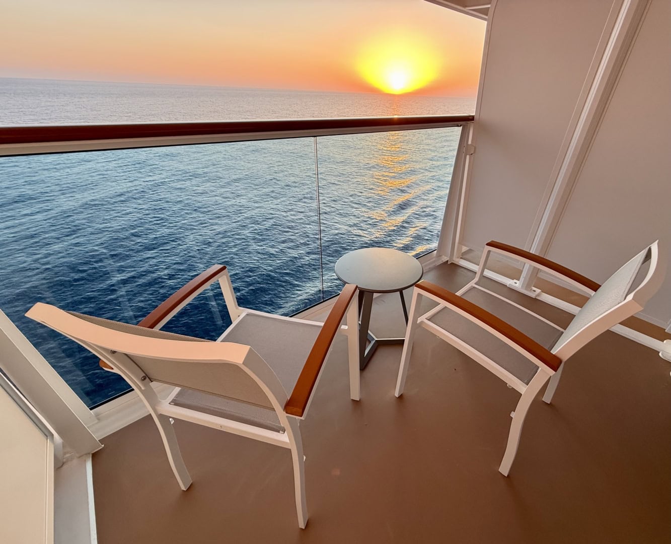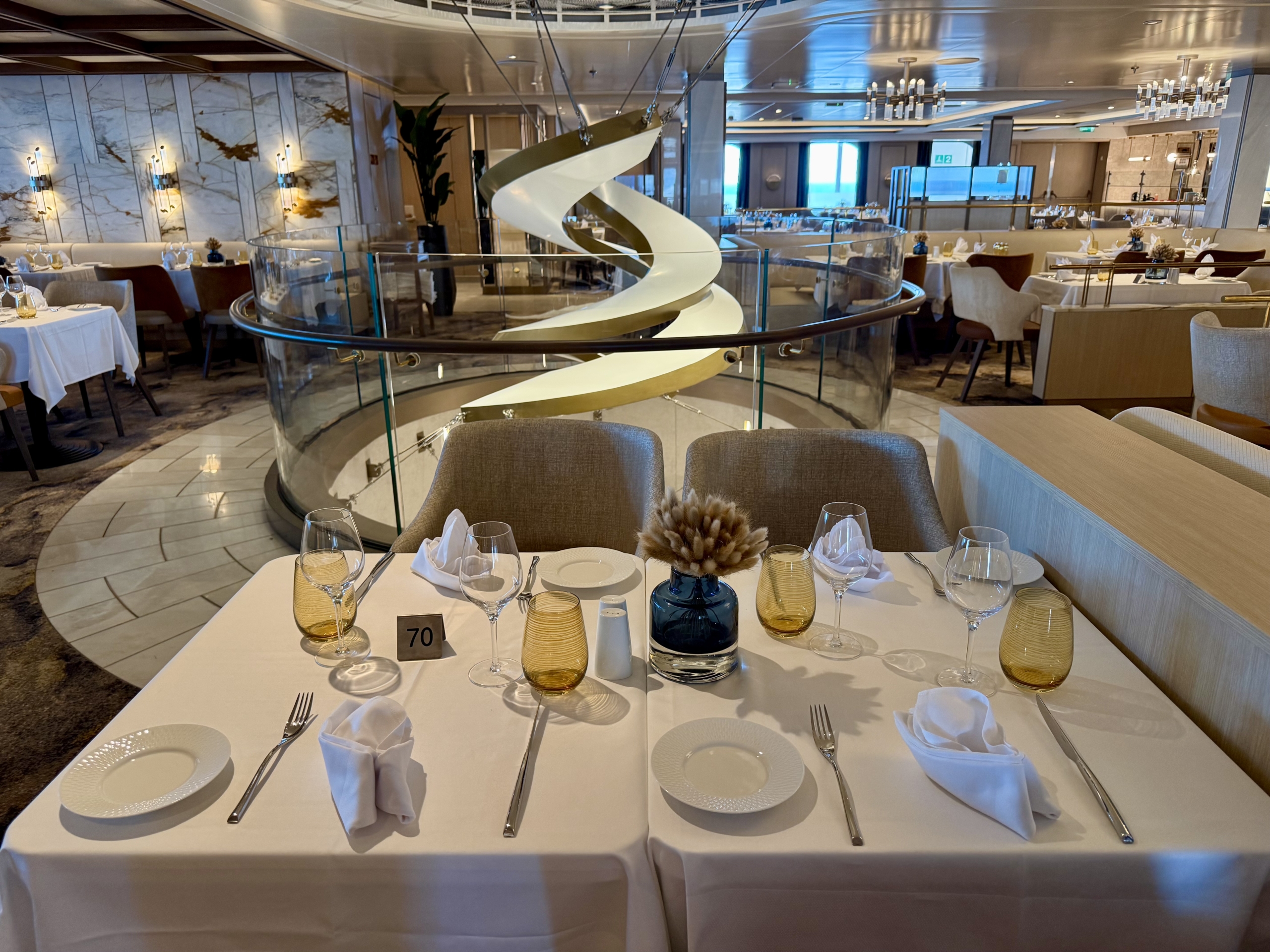 Privates Gourmet-Erlebnis mit Meerblick: Lass dich an Bord mit einem romantischen Dinner in deiner eigenen Kabine verwöhnen – begleitet von spektakulärem Blick auf das offene Meer. Wähle aus fein komponierten Frühstücks- und Abendmenüs, liebevoll serviert auf deinem privaten Balkon.