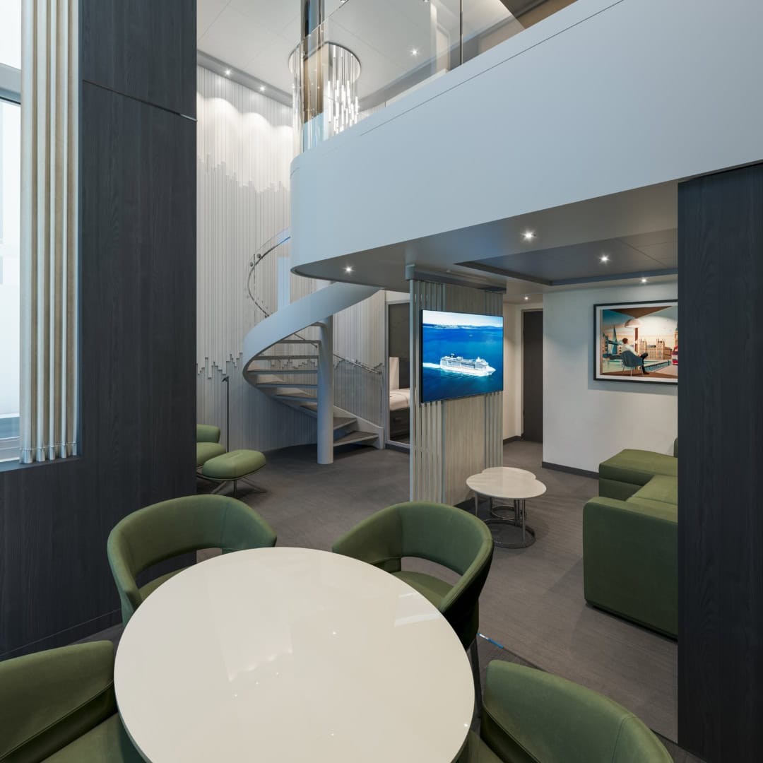 Die Royal Maisonette-Suite ist ideal für Familien oder Gruppen von bis zu sechs Gästen, die den Luxus und die Vorzüge des MSC Yacht Clubs in vollen Zügen geniessen möchten.